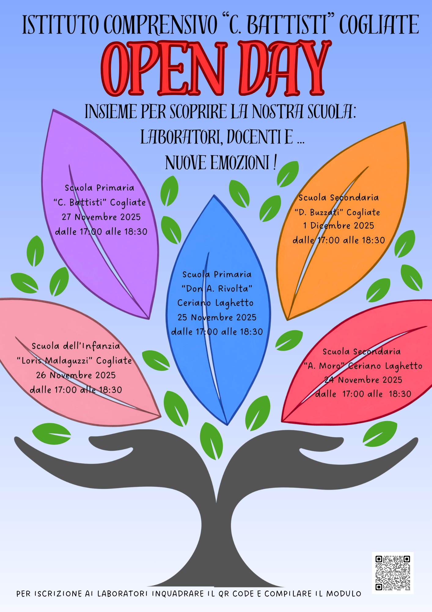 Si prorogano i termini di iscrizione all'open day per l'anno scolastico 26/27 dei plessi della Scuola Primaria e Secondaria dell'I.C. Battisti.