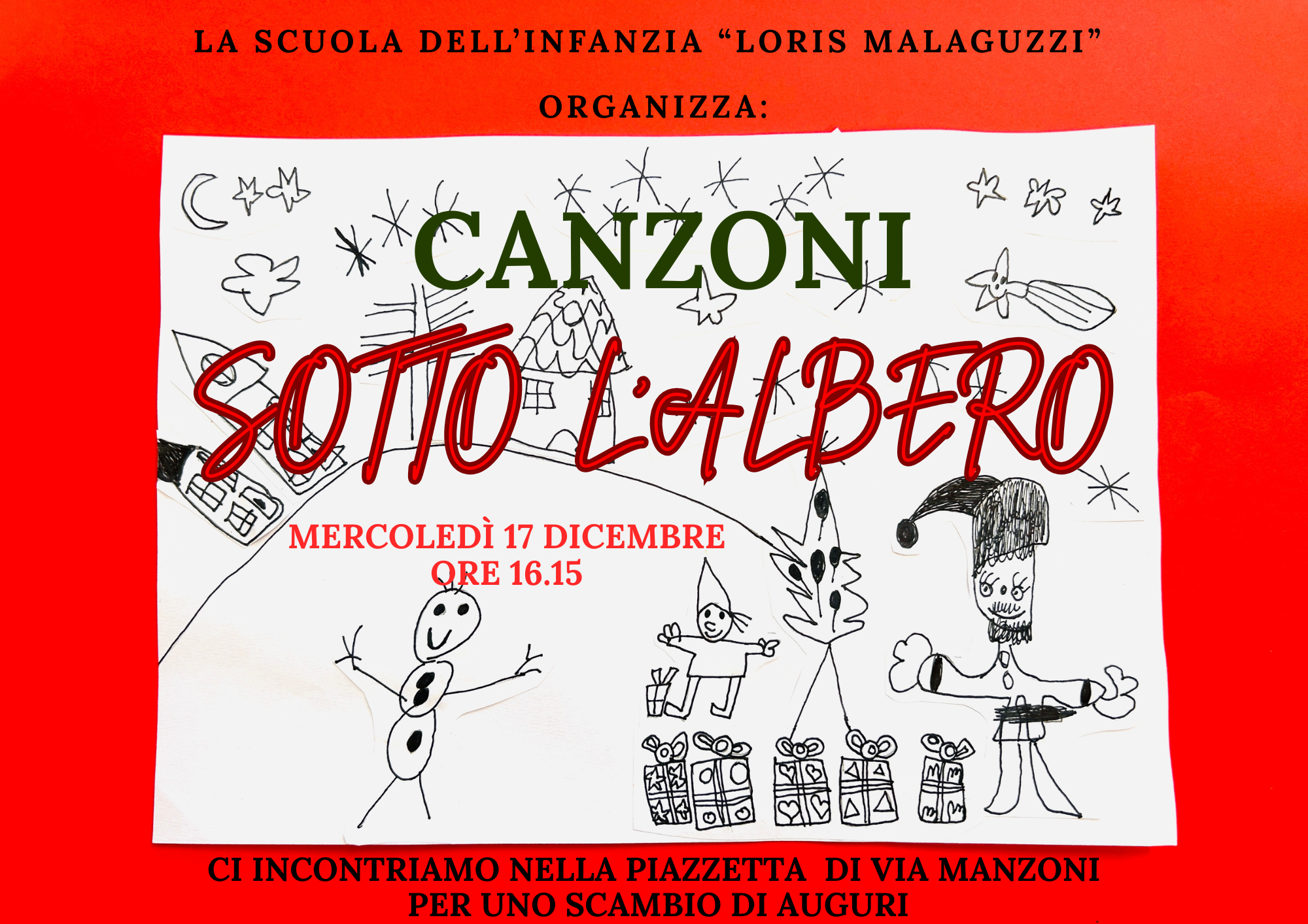 Pertanto, mercoledì 17 dicembre 2025, subito dopo l'uscita dalla scuola , alle ore 16.15 presso la piazzetta di via Manzoni a Cogliate, tutti i bambini e le bambine frequentanti la scuola dell'Infanzia "L.Malaguzzi" sono invitati a partecipare alla " Festa sotto l'albero".