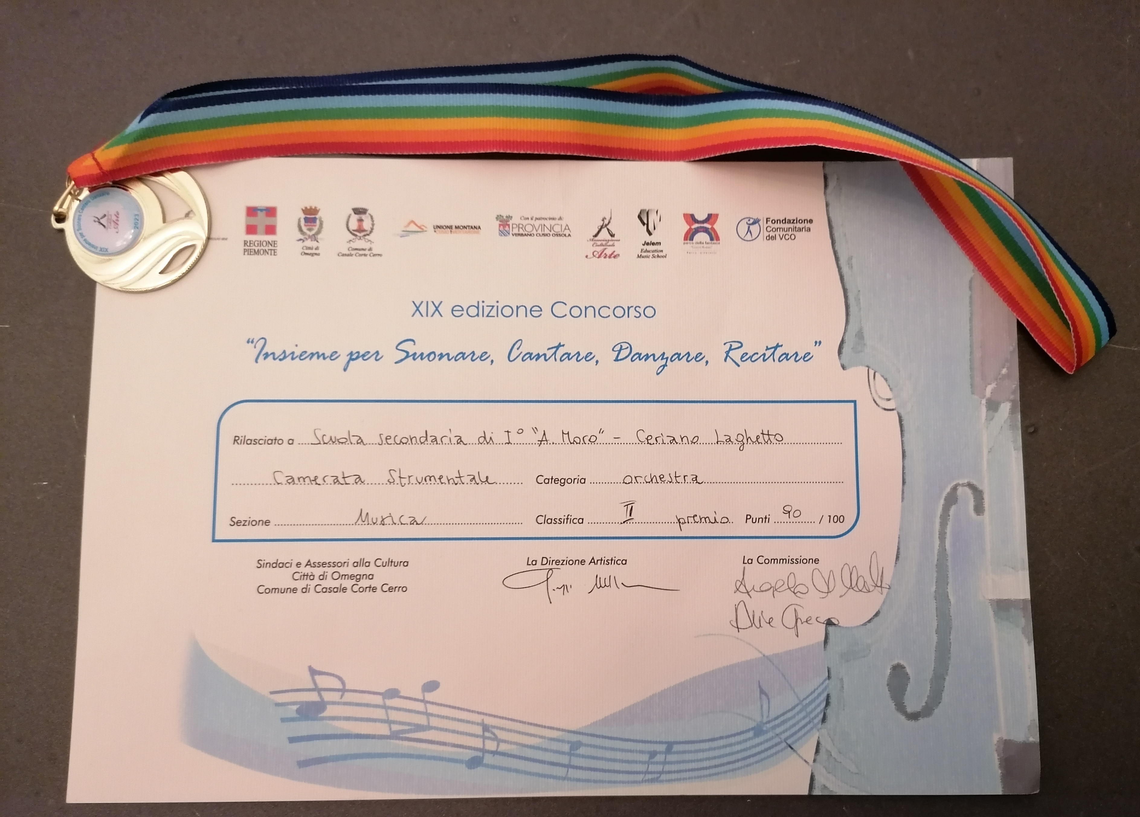 - Omegna Concorso insieme per suonare e cantare II posto con 90 punti.