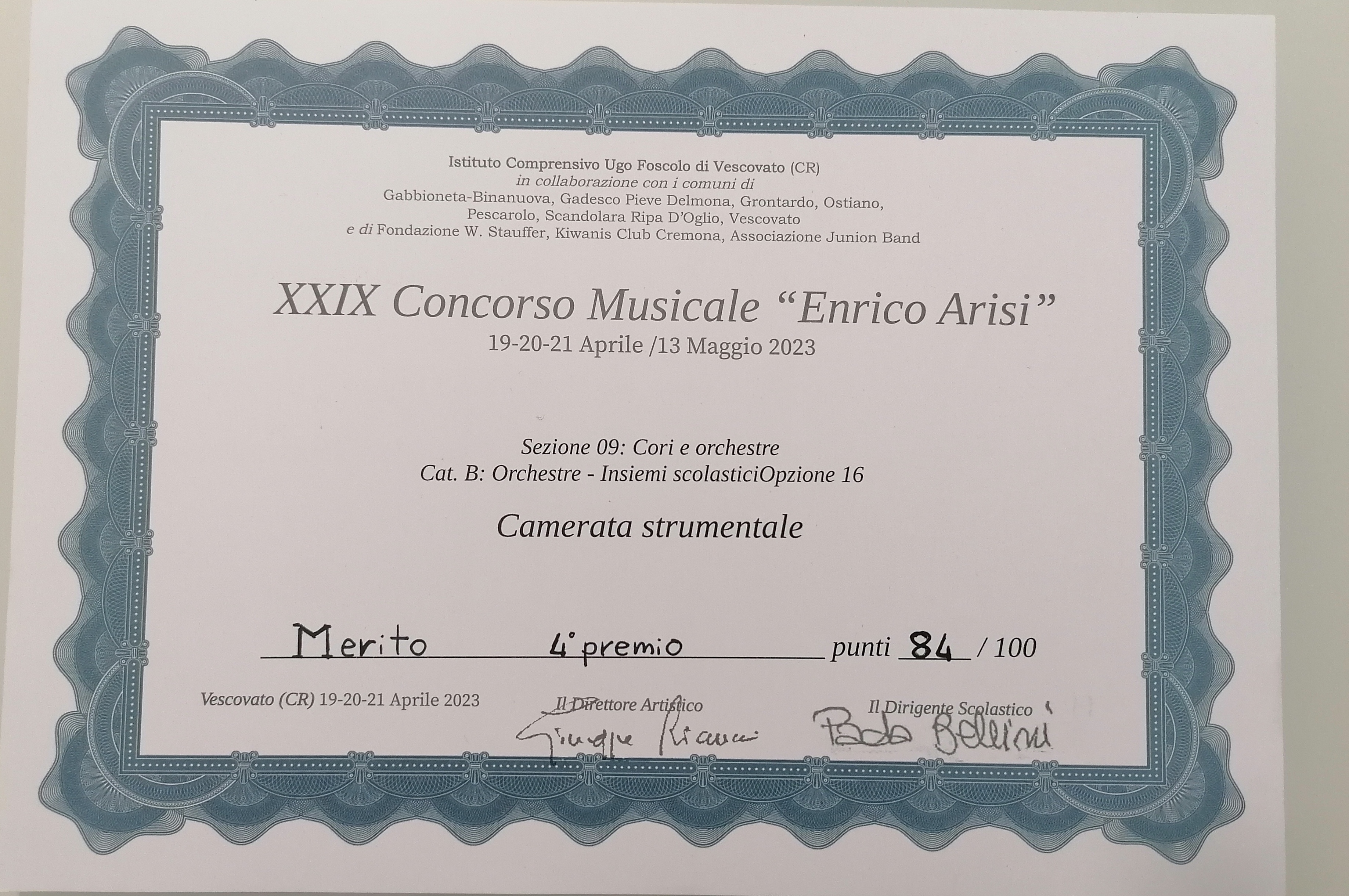 - Vescovato Concorso Arisi II posto con 90 punti