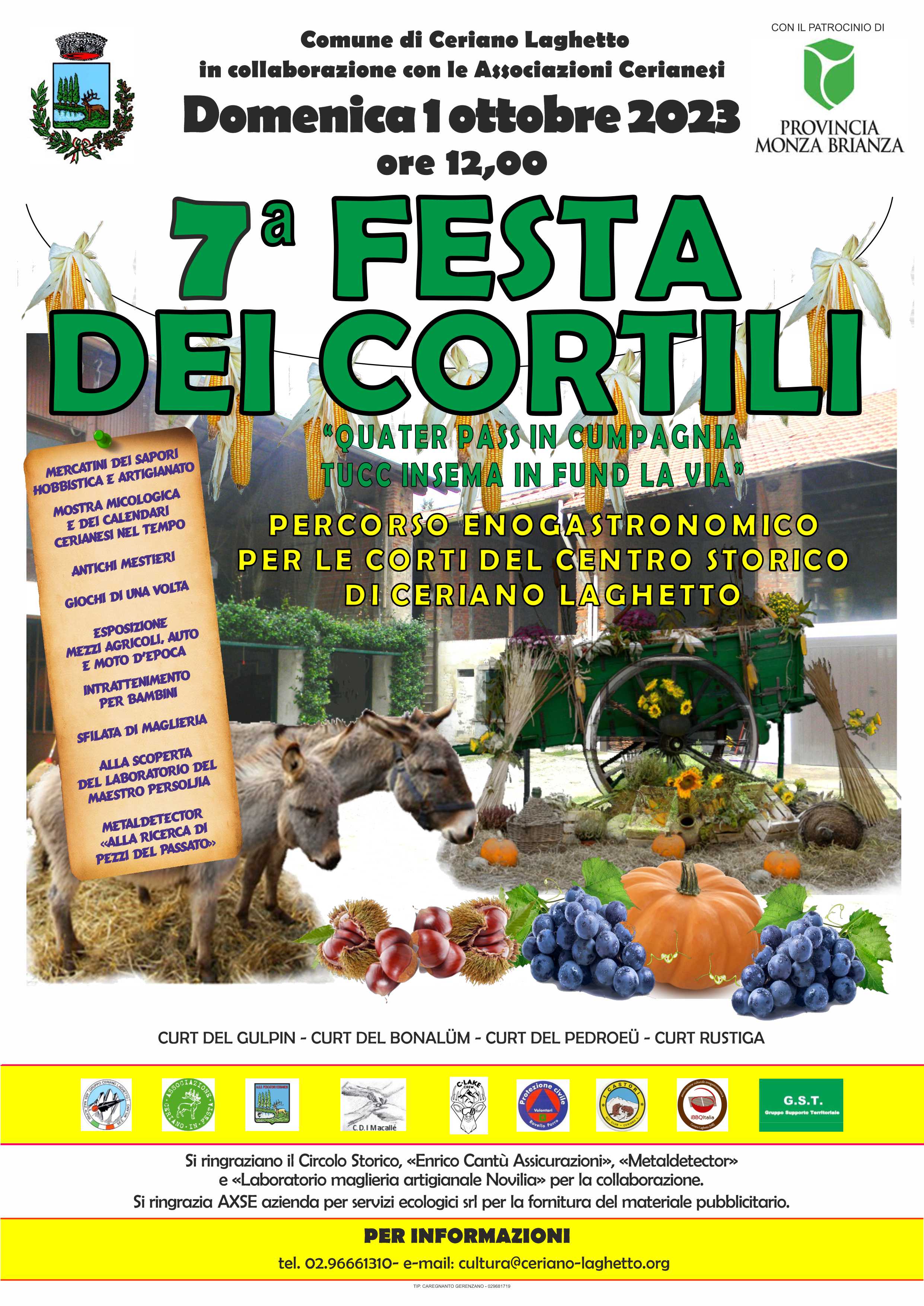 7^ FESTA DEI CORTILI "Quater pass in compagnia tucc insema in fund la via" Domenica 1 ottobre 2023 dalle ore 12.00. FESTA DEI CORTILI 2023